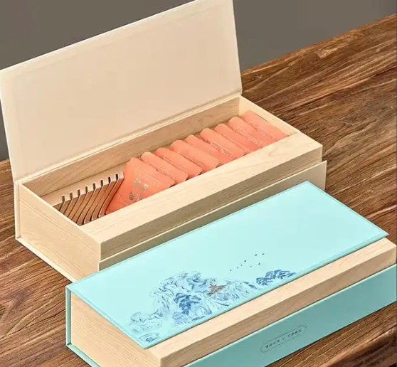 制作书型礼盒,首先要明确设计要求,包括外观造型、具体尺寸、选用纸张以及印后工艺等细节。确定好设计后,便进入印刷环节。使用高精度印刷设备,将精心设计好的图案和文字准确无误地印刷在面纸和内贴纸上,确保色彩还原度高、图案清晰。印刷完成后,对面纸、内贴纸等材料进行裁切。依据既定的尺寸规格,使用专业的切纸设备,将它们裁切成合适的形状和大小,为后续的粘贴工序做好准备。